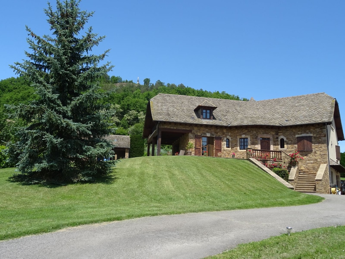¡Flechazo garantizado! En el parque regional de los grandes Causses, esta cálida casa de campo para 6 personas (hasta 8 personas) le dará la bienvenida. Amantes de la naturaleza o que necesiten recargar las pilas lejos del ajetreo y el bullicio, ¡están en el lugar indicado! Un lugar propicio para el bienestar con unas vistas maravillosas del valle. ¡Para el máximo relax, una sauna privada! ¡Hay senderos que parten de la casa y, para refrescarse en verano, bañarse en los lagos de Lévezou o en el Tarn es un verdadero placer!