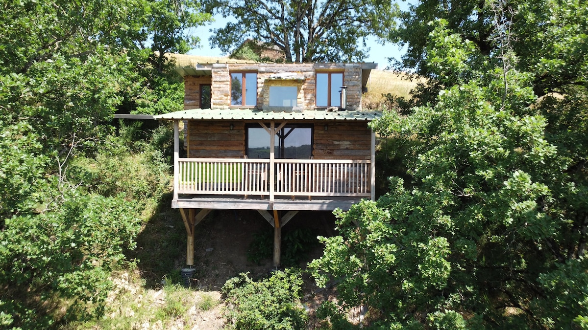 Située dans le Parcs Naturel des Grands Causses notre chalet perché est un petit coin de paradis au cœur des gorges des Raspes entre la rivière Tarn et les lacs du Lévézou. Vous pourrez profiter de la nature et d une vue magnifique sur la vallée. 2 chambres pour accueillir 4 voyageurs. Une cuisine, un petit salon et une terrasse. Une salle d eau accessible par un sentier à environ 80 mètres avec 2 douches et 2 lavabos.