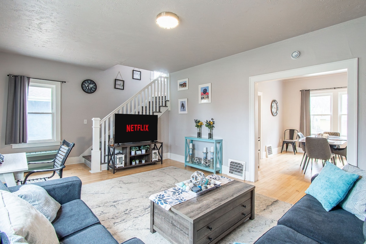 Casa de dos dormitorios cerca del centro de Fargo, NDSU, Civic Center, Fargo Dome y el centro del hospital Sanford. La casa está totalmente equipada con wifi rápido, televisores inteligentes y cable. El baño recién remodelado cuenta con una ducha a ras de suelo y suelo de baldosas con calefacción. La cocina está lista para usar con una cafetera Keurig y todos los aparatos/electrodomésticos pequeños que necesitarás durante tu estancia. Este espacio es ideal para estancias más largas con estacionamiento fuera de la calle, un patio en la parte trasera y una terraza de cedro en la parte delantera.