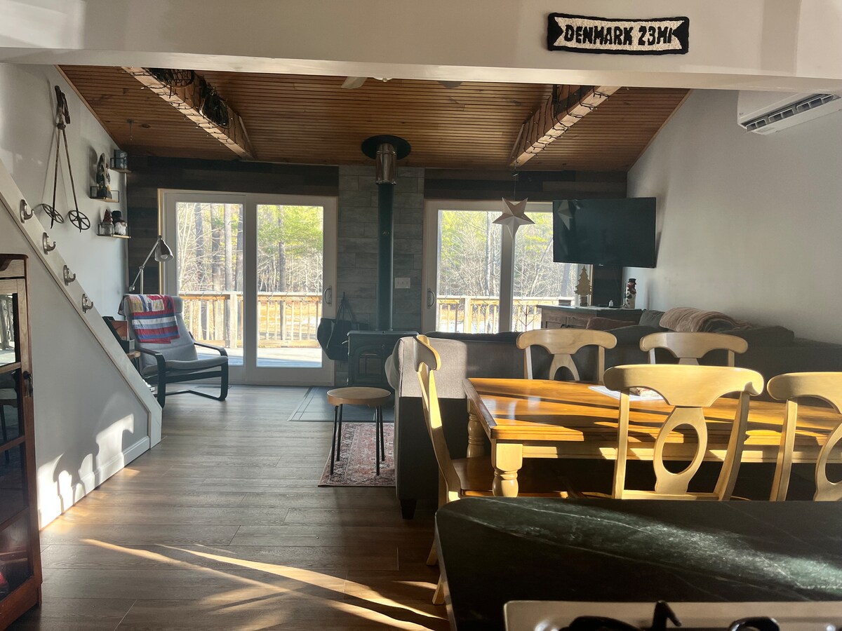 ¡Te damos la bienvenida a Mad Moose Lodge! Las aventuras durante todo el año comienzan en este chalet de Stoneham de 2 dormitorios y 2,5 baños. Este alquiler vacacional ofrece increíbles vistas al follaje de otoño y fácil acceso a montañas y lagos. Cerca de esquí de fondo y raquetas de nieve en invierno y senderismo, ciclismo de montaña, paseos en bote y natación en verano, hay un sinfín de opciones para disfrutar al aire libre. ¡Disfruta de impresionantes puestas de sol sobre las montañas desde la comodidad del sofá o mientras disfrutas de un juego de billar en la sala de juegos!