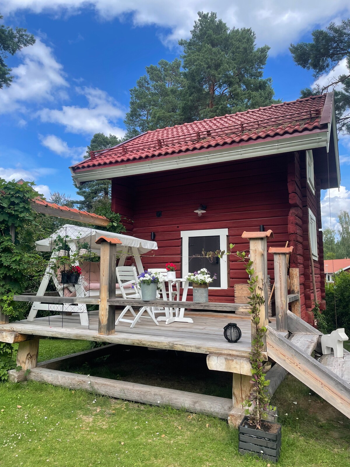 La cabaña está situada en una zona residencial tranquila, a 500 m a pie del centro de Mora, donde se encuentra el Museo Zorn, y cerca del Museo de la Carrera de Vasa y de la meta de la Carrera de Vasa. Está a 1,6 km de Hemus, donde se encuentra el recinto de la Carrera de Vasa, para practicar esquí, correr y montar en bicicleta. Tomteland está a unos 15 km de distancia y merece una visita. El bosque está cerca para dar paseos y disfrutar. Siljan está a poca distancia a pie de la zona de baño Saxviken o de la zona de baño Kepphusviken, en el parque de Mora.