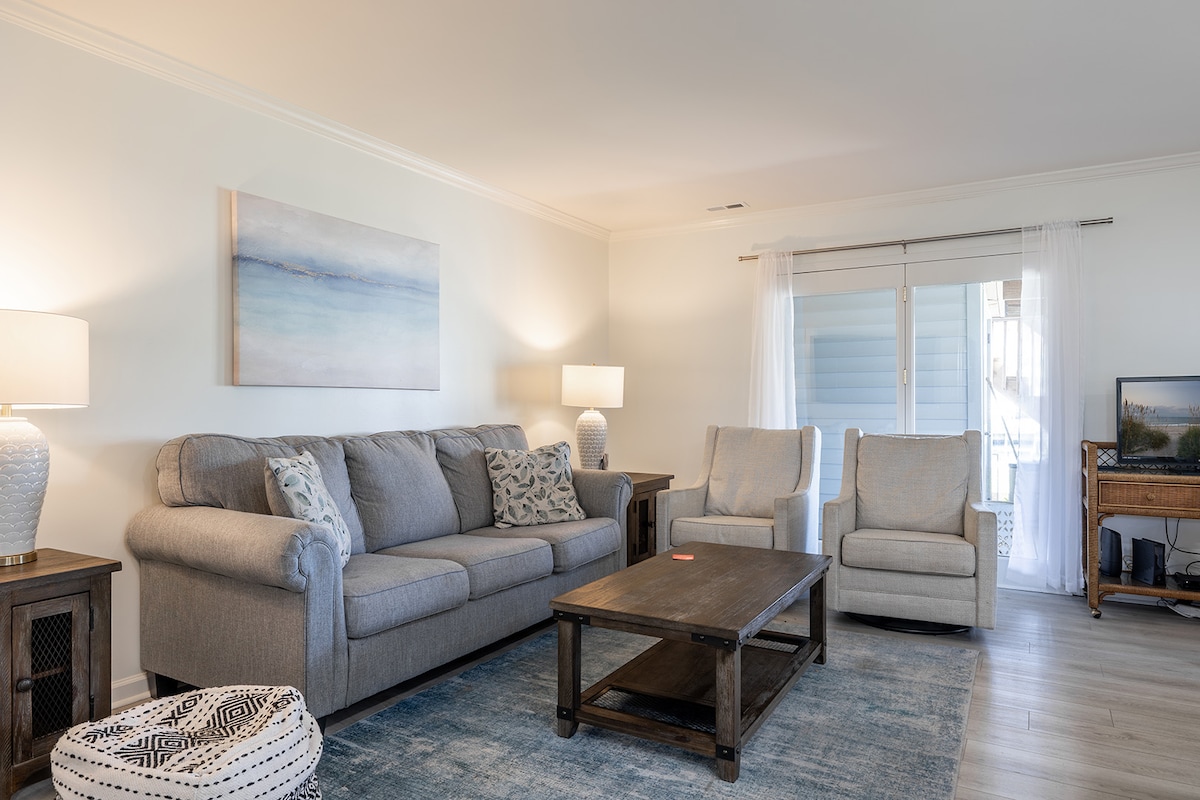 ¡Te encantará Teffie's Fault! Un apartamento de 3 dormitorios y 2 baños recientemente renovado con servicios para el hogar. Esta increíble propiedad se encuentra a pocos pasos de la playa en un barrio familiar tranquilo. Disfruta de vistas al mar en el balcón delantero y vistas al canal en el balcón trasero. Nuestro plano de planta abierta es ideal para pasar momentos en familia. Wifi gratuito, 4 televisores y juegos de interior incluidos. Disfruta de restaurantes/bares locales, deportes acuáticos, parques estatales y nacionales. Realiza un inolvidable viaje en ferry para ver los caballos salvajes en los bancos exteriores de Carolina del Norte.
