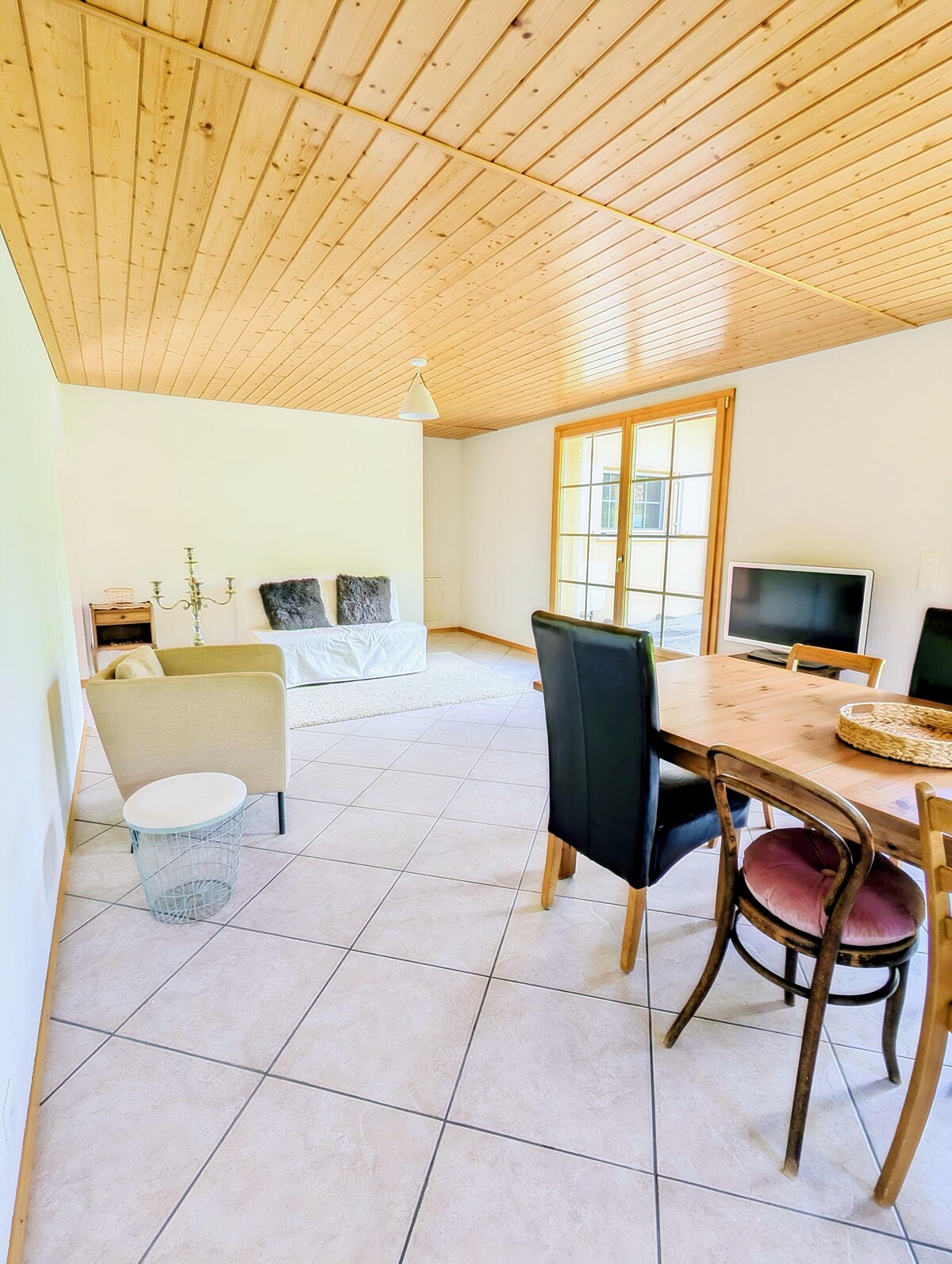 Estudio totalmente equipado. Acogedor con su espacio de 22 m2 ofrece una sensación de confort atemporal creado para momentos especiales y una estancia tranquila. Su cama doble de 140x200 cm garantiza un sueño de calidad. A petición previa, 1 espacio de estacionamiento de pago está a su disposición al pie de la casa. El precio es de CHF 10.-/noche. El pago se realiza a más tardar el día de llegada del Guest. Medios de pago: Efectivo o a través del centro de resolución de Airbnb.