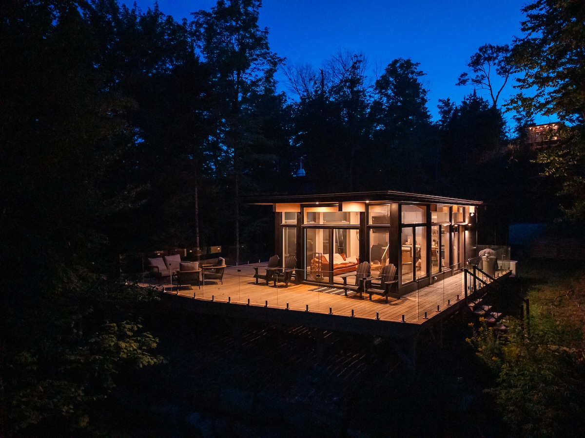 Contact us for our On-going Promotion! Secluded Architect Glass Cabin perched for breathtaking Mont-Tremblant mountains views! Klint Tremblant (Cliff in Danish) is the unique design so you can retreat to comfort and luxury. It is a majestically glazed architectural space combining natural simplicity & contemporary luxury, 10 min from village Mont-Tremblant & Panoramic terrace & Private Hot tub In Laurentian. Designed by Canadian famous Designer in shared domain of 1200 Acres!