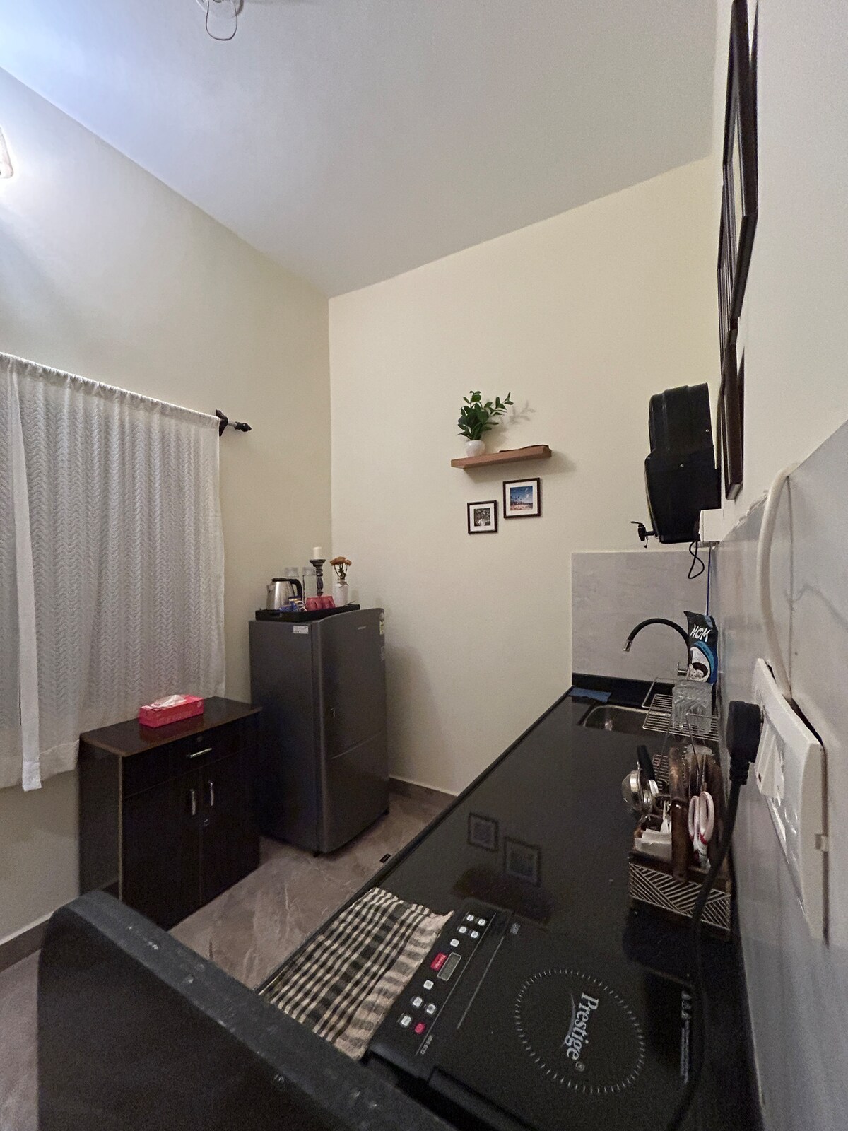 Descubre un mundo de paz e inspiración en The Pause Project, un acogedor y romántico Airbnb ubicado en medio de un exuberante bosque en Siolim, al norte de Goa. Perfecto para viajeros solos, parejas y familias, ofrece un espacio para relajarse. Sumérgete en libros, música, recuerdos de viajes y un ambiente acogedor que te hará sentir como en casa. Cocina en la cocina americana o explora Siolim, conocida por sus cafés y bares, con Anjuna, Vagator, Assagao y Morjim, las playas de Mandrem a 15-20 minutos y a 35 minutos del aeropuerto MOPA.