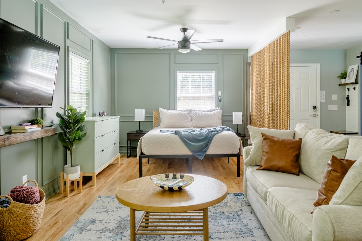 Nuestra espaciosa y aislada suite de invitados está en la ubicación perfecta para disfrutar de todo lo que ofrece la hermosa Charleston. Ubicada en un barrio tranquilo, estamos a menos de diez minutos en coche de la Battery y del distrito histórico del centro de la ciudad, y a quince minutos en coche de Folly Beach. La suite fue construida en 2023 e incluye una multitud de comodidades para que tu viaje sea perfecto. Con hermosos ventanales del suelo al techo, la vista tiene amplios robles y magnolias maduras, preparando el escenario para tu escapada sureña.