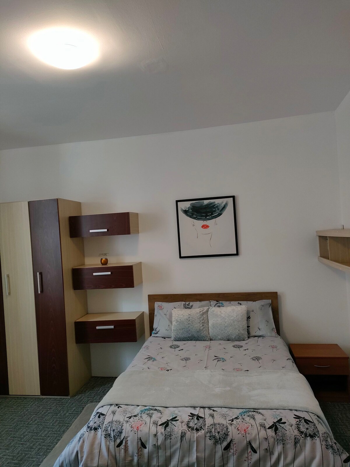 El moderno y acogedor apartamento de dos habitaciones está totalmente equipado con todo lo que un viajero necesita. Situado a 3,5 km del centro de la ciudad, cuenta con aparcamiento privado seguro, está a pocos minutos a pie de grandes supermercados, pequeñas tiendas de barrio, mercado orgánico, el estadio de fútbol «Dan Păltinișanu» y el hospital municipal «Spitalul Județean». También a poca distancia a pie, puedes encontrar un McDonald's, cajeros automáticos, gimnasios, piscinas, parques y algunos de los clubes nocturnos más populares de la ciudad.