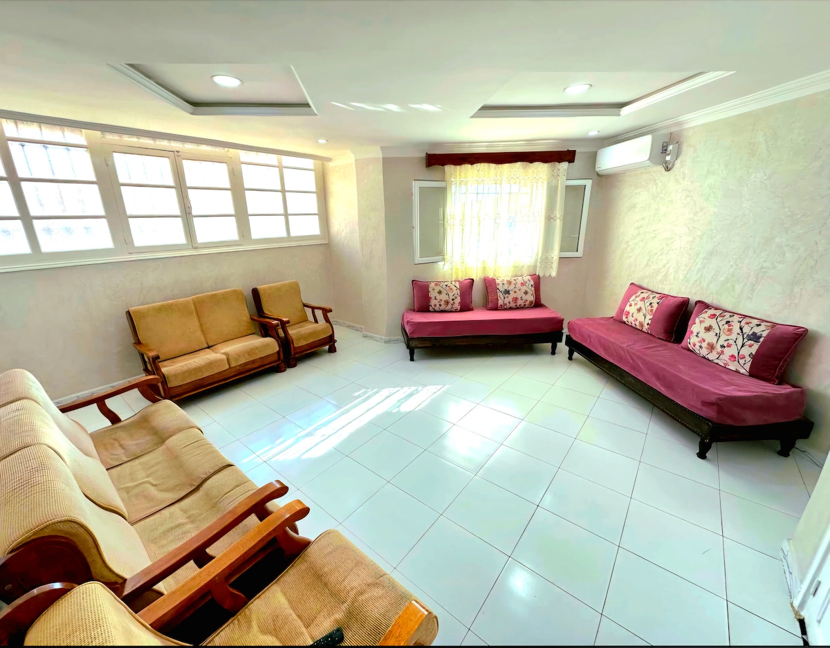 Nivel de villa transversal en Mostaganem barrio la cornisa sidi mejdoube a 5 minutos a pie de la playa de mostaland y l acquaparc AZ y a 10 minutos del centro de la ciudad en valet. Un magnífico apartamento de 150 m2 en planta 2 que consta de una gran sala de estar abierta a una cocina de 3 dormitorios.02 SDB, incluida una hamam privada en la habitación principal; con aire acondicionado. Calefacción central de internet de alta velocidad. Tranquilo y seguro, Capacidad para 12 personas,garaje cerrado para 2 coches cámara de vigilancia. Precio para 6 personas.