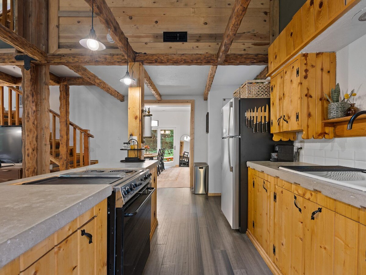 Disfruta de una estancia rejuvenecedora en tu viaje al monte Hood en nuestra tranquila cabaña frente al río que admite mascotas. Ubicada en el río Salmon, esta cabaña está llena de encanto de los años 60 y equipada con comodidades modernas como jacuzzi, wifi de alta velocidad y lavadora/secadora para que tu estancia sea cómoda. Prepara s'mores junto al río o acomódate con un buen libro junto a la chimenea interior. Hay varios bares y restaurantes a 5 minutos en coche y a solo 20 minutos de SkiBowl.