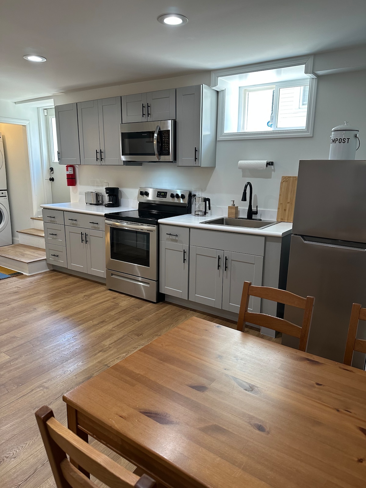 Este espacio acaba de ser renovado y ahora tiene su propio baño privado en el mismo nivel. El alquiler sobre el suelo tiene un baño completo, una cama tamaño queen y una pequeña cocina (nevera pequeña, microondas y cafetera) para asegurarte de que tienes lo básico necesario para explorar la zona. El acceso sin llave facilita el registro de entrada. Ubicado en una tranquila calle residencial, obtendrás el descanso que necesitas para trabajar o explorar la zona.