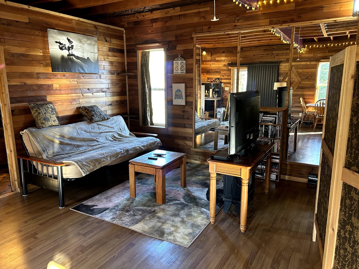 Disfruta de todas las comodidades de casa en un espacio pequeño. Duerme profundamente en una cómoda cama tamaño queen, disfruta de la tranquilidad que ofrece Sayward. Dormitorio en el desván, espacio limitado para la cabeza y escaleras empinadas. Cocina tu comida, nevera, plancha, placa calefactora, cafetera, microondas, tostadora disponibles. El porche cubierto protege de la lluvia y el sol, relájate dentro o fuera y disfruta del wifi. Mira una película en la cama o sal a los senderos por la puerta trasera, viajes de pesca disponibles a petición, tubing en el río Salmon, bahía de Kelsey y mucho más