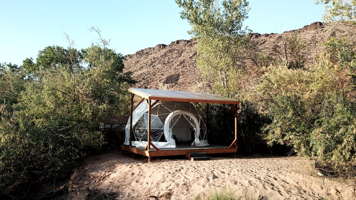 Cúpula digna de Instagram con estufa de pellets junto a Zion