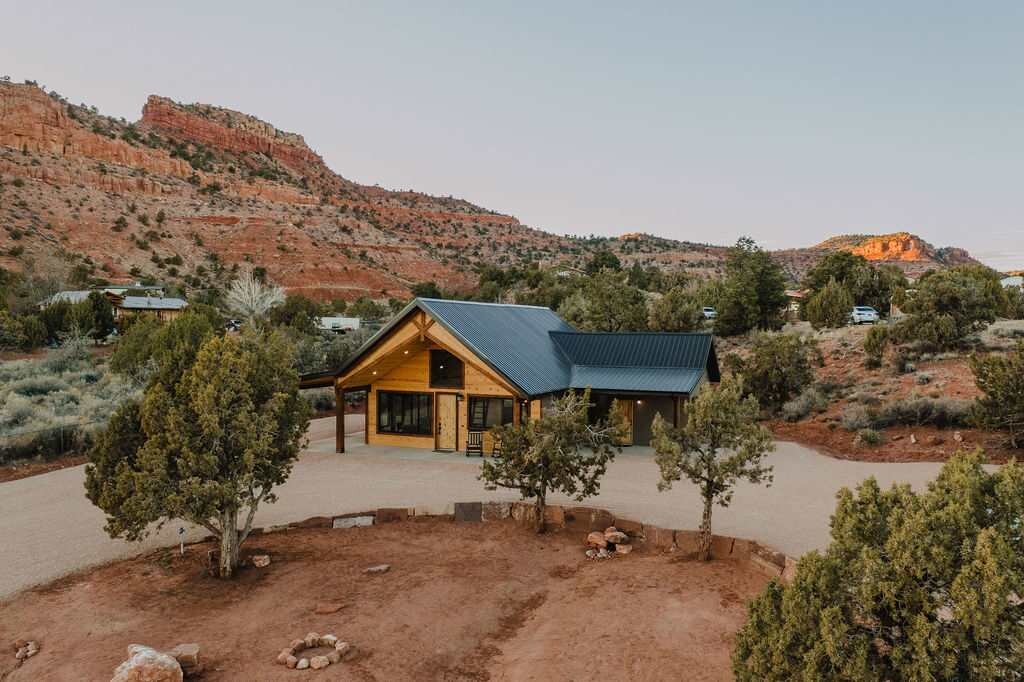 Disfruta de la mejor escapada al desierto con nuestra cautivadora cabaña ubicada en un extenso oasis desértico de 40 acres en South Zion. Transfórmate en un reino donde la belleza indómita se une a la comodidad moderna, donde la inmensidad del paisaje desértico se convierte en tu santuario personal. Un camino accidentado 4x4 te conducirá a una joya oculta que promete un retiro inigualable. Ubicada en lo alto de una montaña, nuestra encantadora cabaña te espera, una mezcla armoniosa de encanto rústico y lujo contemporáneo.