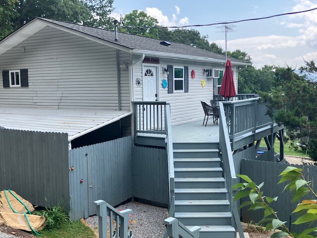 If you are coming to the mountains, why not stay IN the mountains? Enjoy the cool mountain air, breath-taking views, & peaceful surroundings. Away from it all, but close to town. This is a newly constructed, full-size, standalone one-bedroom apartment. Ideal for a couple, or family with 1 or 2 children. Roomy bedroom with king-sized bed & living room with sleeper sofa. Mountain views from all rooms & deck. Smart TV's, Wifi, private parking, fire pit, private fenced yard, pet friendly.