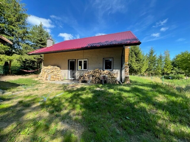 La propiedad a la que invitamos es una recién presentada, moderna, 2 dormitorios con salón y cocina ,totalmente equipada, casa cómoda, ubicada en una parcela independiente, grande , bellamente organizada. Es un lugar único y encantador, rodeado por todos lados de vegetación. Una parcela de 800 metros de la orilla de una muy limpia (1 clase de limpieza) del lago Łęsk - 180 m. caminando más a lo largo de la orilla del lago (5 minutos), veremos una zona de baño municipal con un gran embarcadero. La vista desde la cabaña es directamente al bosque.