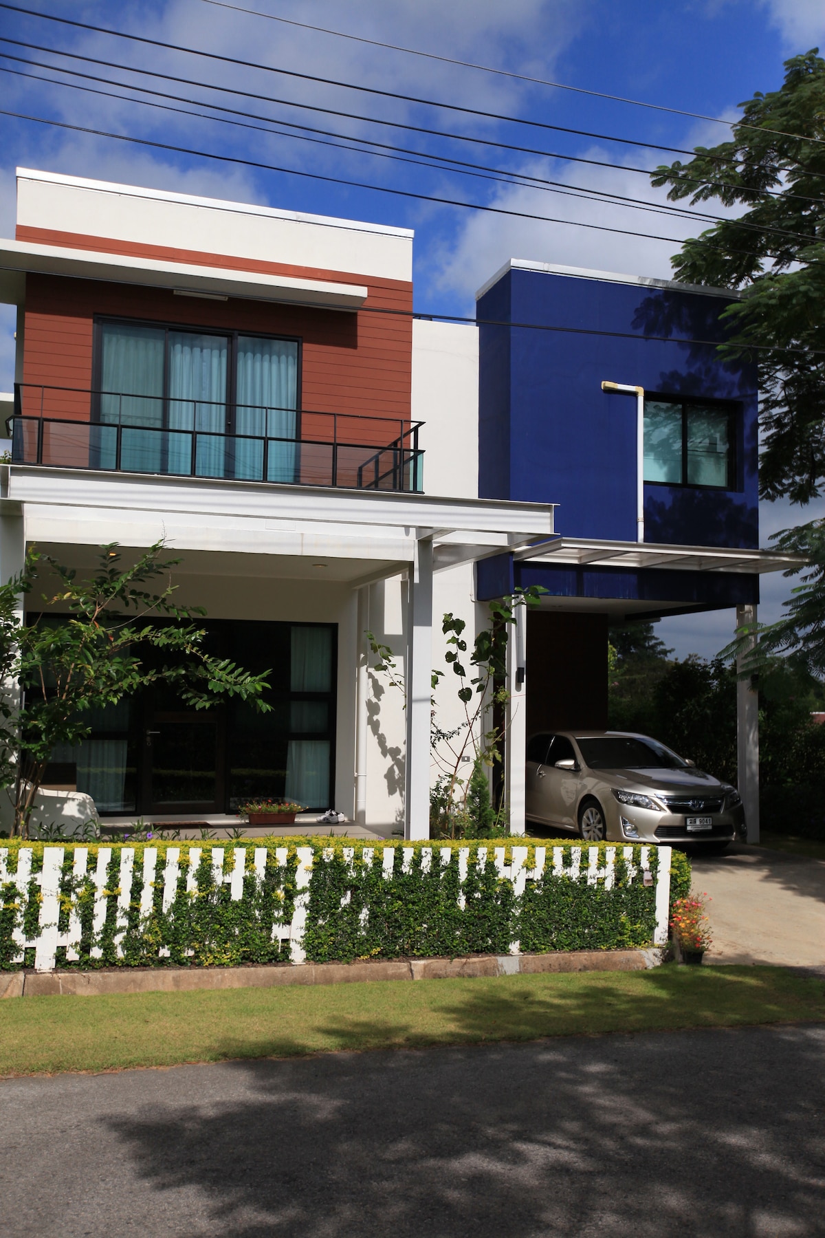 ✅Toda la casa es ✅ideal para grupos que admiten mascotas ✅pequeñas Escápate de Bangkok para relajarte o trabajar a distancia en la naturaleza. Por qué te encantará: ⭐️Privacidad: casa completa de 3 plantas (hasta 24 personas). ⭐️Grandes árboles: relájate en la naturaleza y ve ardillas blancas ⭐️Netflix, ping pong, tabla de tenis, barbacoa, biblioteca, ciclismo, piscina (2 minutos en auto). Casa ⭐️del árbol: zona de hamacas y vista del jardín ajardinado Disfruta de un tiempo de calidad en la naturaleza y observa cómo las ardillas blancas saltan de un árbol a otro. * Los huéspedes necesitan su propio transporte para desplazarse.