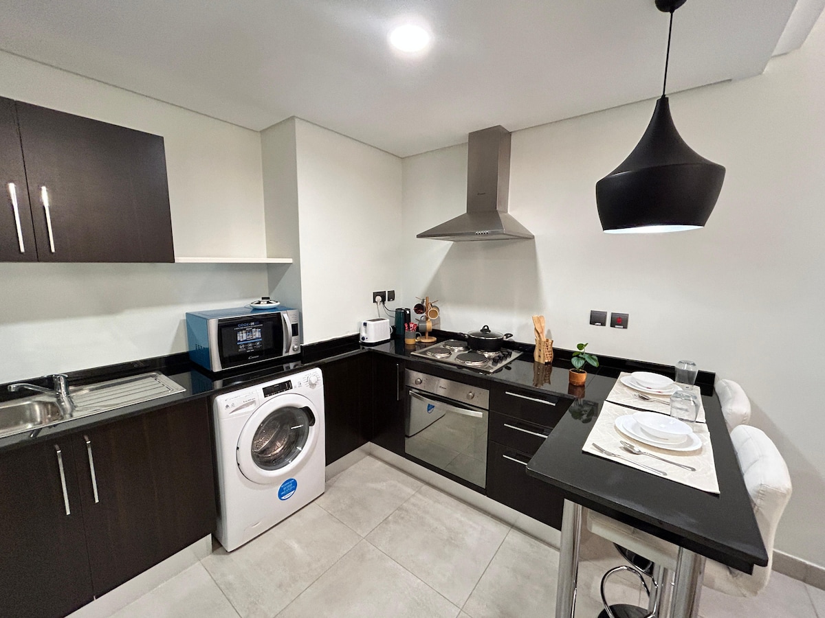Bienvenido a nuestro apartamento de 2 dormitorios junto al mar situado en la zona de las torres Jufair. Disfruta de impresionantes vistas al mar desde el balcón y de la comodidad de estar en una ubicación privilegiada, cerca de atracciones y servicios populares. Nuestro espacio es perfecto para aquellos que buscan relajarse y explorar la vibrante ciudad. Ofrecemos un ambiente cómodo y acogedor, lo que te garantiza que te sientas como en casa durante tu estancia.