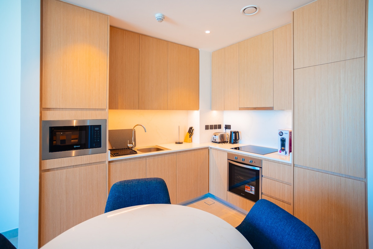 Encuentra tu paz interior y disfruta de las vistas más impresionantes en este apartamento de nueva construcción en Era View, Manama. Este exquisito apartamento n.º 343 situado en el piso 34, cuenta con un balcón (vista a la ciudad/al mar), una acogedora sala de estar, dormitorio con ropa de cama de plumas, una cocina totalmente equipada, comedor, aseo con artículos de aseo gratuitos, dos televisores inteligentes de 55 pulgadas (Netflix/Amazon Prime disponibles) y acceso a Internet de alta velocidad ideal para el trabajo y el uso personal.
