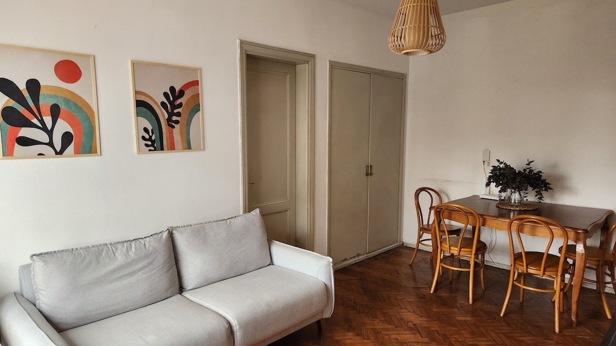 ¡Bienvenido a nuestro espacio amplio, luminoso y altamente funcional! A pasos de la Plaza de la Independencia y a pocos pasos del la Rambla. Te encantará la excelente ubicación, una de las mejores zonas de Montevideo para hacer turismo. Buses, supermercados, Lavanderías, deliciosos restaurantes, pubs y mucho más están a poca distancia. Además, hablamos inglés y podemos charlar un poco en portugués. ¡Vení y sentite como en casa!