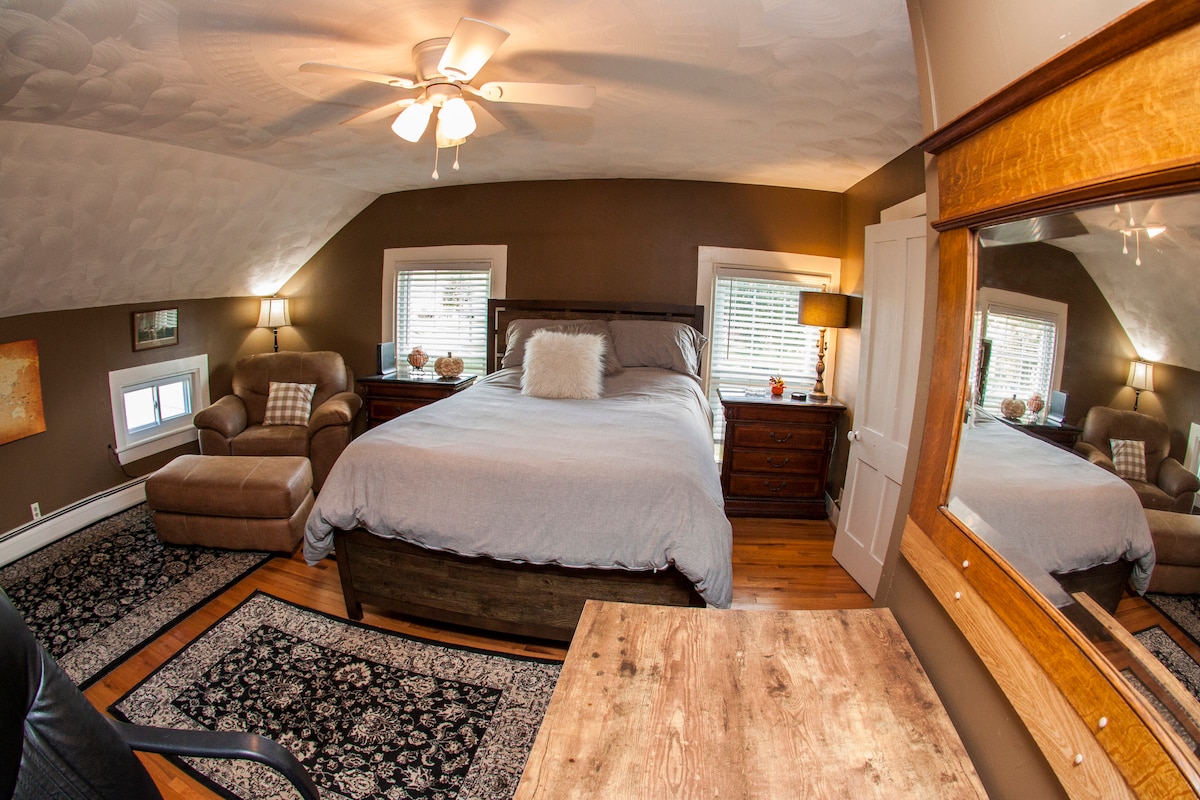 The Garret on the Green se encuentra en el corazón de Clinton, en una iglesia histórica construida en 1821. Cerca de las tiendas de Park Row y a pocos pasos del campo del pueblo, es un lugar ideal para un retiro de trabajo remoto, una miniescapada al norte del estado o una visita a Hamilton College o Colgate. En la unidad de arriba de una casa de 2 unidades con entrada privada y entrada con teclado, disfruta de una cocina recién renovada, sala de estar, dormitorio y baño principal completo con una bañera para relajarte al final de tu día.
