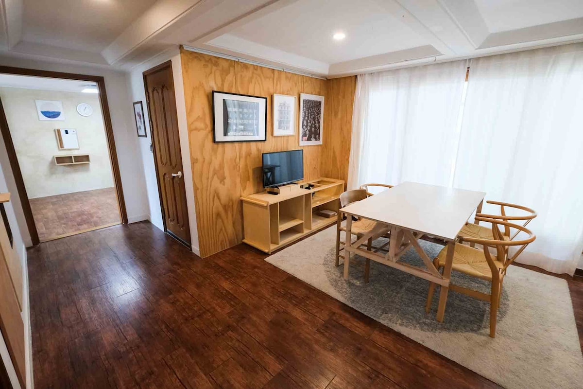 - ¡Superanfitrión de Airbnb durante 14 temporadas! - Acceso fácil y rápido a la estación de metro de Hongdae: 5-7 minutos caminando. - Departamento nuevo de 3 dormitorios y 2 baños totalmente equipado. - Diseño moderno y elegante y camas cómodas +barrio - Wifi normal y wifi portátil disponibles(gratuito). - ¡Ascensor disponible /alquiler gratuito de silla de ruedas! - Restaurantes famosos, cafeterías, tiendas de artesanía, tiendas callejeras y lugares para hacer busking. - Increíbles lugares culturales cercanos y excelentes alrededores de lugares turísticos.