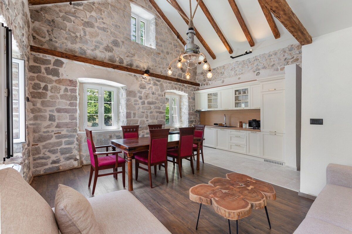 This waterfront old stone house was originally built in 19th century and completely renovated in 2018. The interior represents a mix of a traditional Mediterranean style combined with modern design. Set in a peaceful old fisherman village called Muo, our house is perfect base for exploring the Bay. The Old town of Kotor is less than 10min driving distance while Tivat airport is less than 20min away. The house has three levels and each level has undisturbed sea views.
