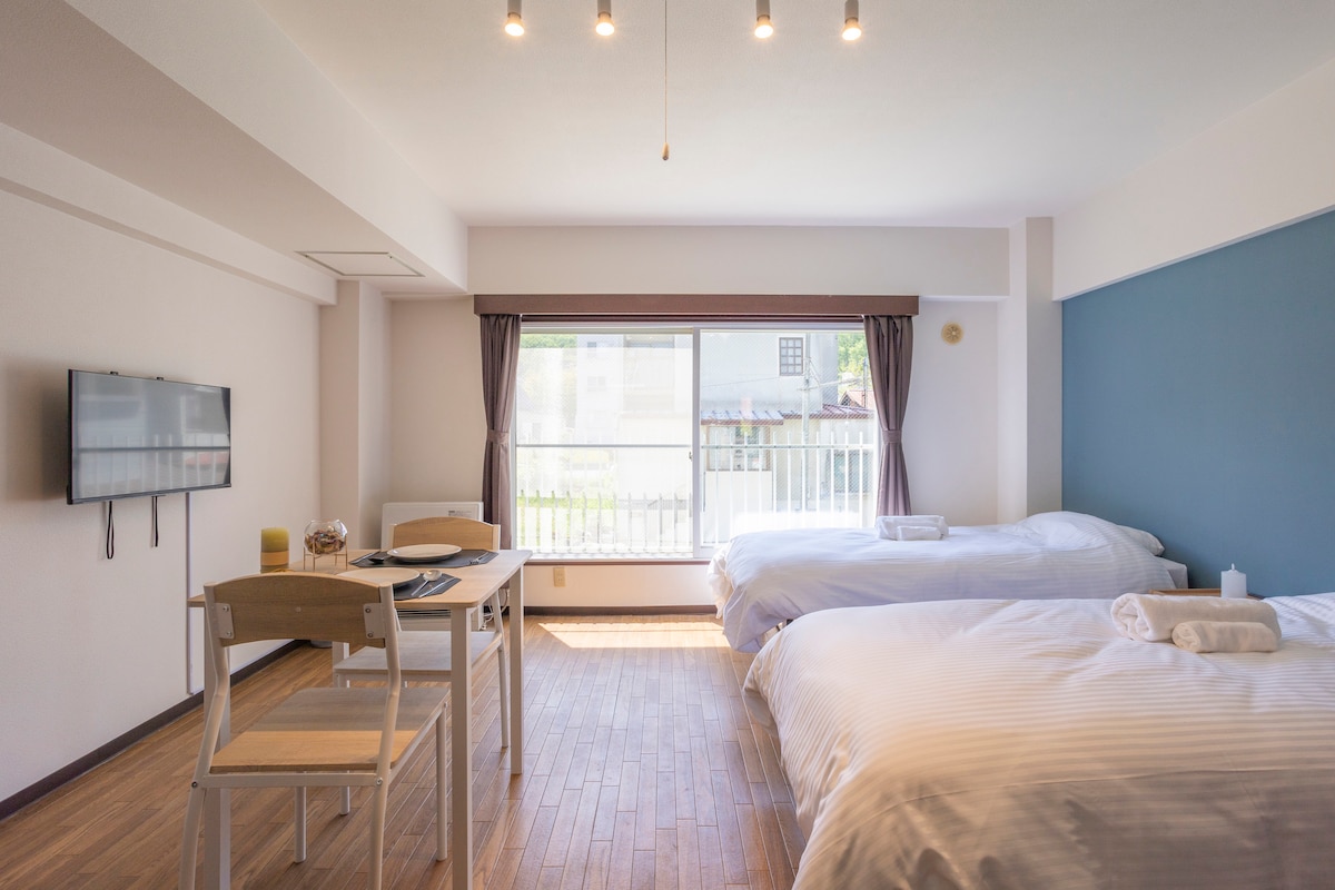 Only 2-min walk to Onsen area. Free pkg available. 5-min to convenience store & local eats. Equipped kitchen & laundry machine make it great for long stays. Rooms are on 2F or 3F (no elevator). Enjoy free Netflix on in-room TVs. Toyako Long Run Fireworks from the property—an unforgettable night view. Just 10-min walk to Toyako Bus Terminal for easy access. Each room has 2 beds+1 folding bed, fitting up to 3 guests. Great base for exploring Lake Toya, Niseko & Rusutsu in ski season.