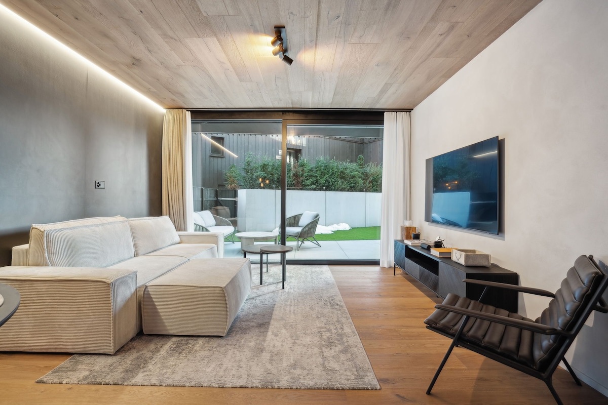 Welcome to this modern garden apartment that is part of the Black Summit Laax Resort, ideal for a relaxing mountain escape. Enjoy direct garden access, a fully, modern equipped kitchen, and a cozy living area with Smart TV and sofa bed. Guests have exclusive access to the resort's wellness area with indoor/outdoor pool, whirlpool, and steam room. Conveniently located near skiing, hiking, and local amenities, with free parking and secure access.