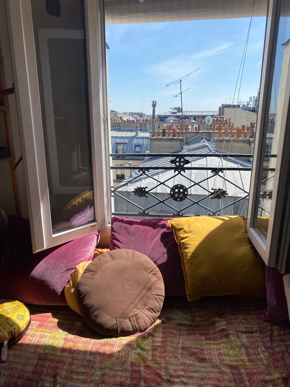 Tranquil and intimate appartement in one of Paris’ liveliest neighbourhoods. The space is an inspiration and „home“ to world reknown writers, painters and film makers - as well as for travellers who want to be in the heart of the city of love. With lots of light and silence, there’s a green balcony to eat, drink or read outside. The building is from the 1800th, so the five floors are to be walkded upstairs (by human power:) The « award » is being high up, far from noise and close to the sun:)