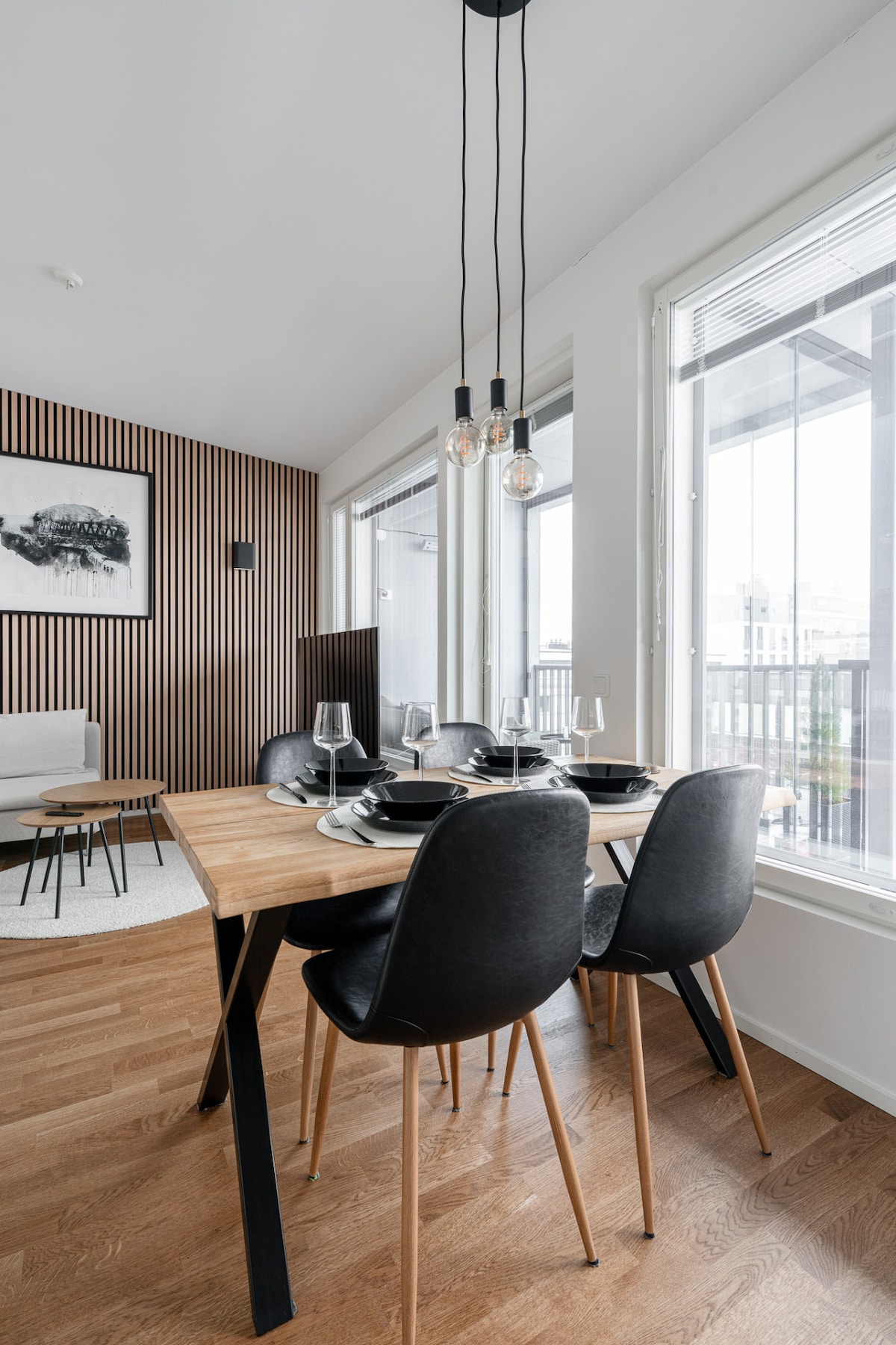Cómoda cama doble en el dormitorio, amplio sofá cama en el salón, 2 colchones de repuesto en el almacén y una cuna para los más pequeños. Gracias al aire acondicionado, el apartamento se mantiene agradablemente fresco incluso en verano. En el mismo edificio hay un excelente restaurante y muchos buenos lugares para comer cerca. Teatros, cines, salas de conciertos, piscina cubierta, bolera, biblioteca Metso al lado, Särkänniemi y Nokia Arena a poca distancia. A un cuarto de hora a pie de las estaciones de tren y autobús, o a pocos minutos en tranvía.