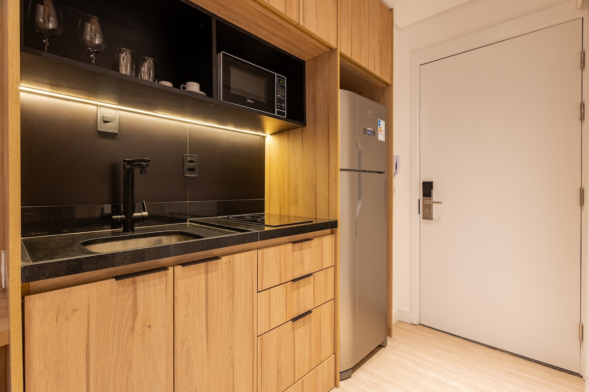 Ven a vivir la experiencia de alojarte en Senses Z Pinheiros, diseñado para proporcionarte el máximo confort y placer durante tu estancia. Se encuentra en R. Pinheiros, actualmente una de las calles más populares de SP con restaurantes, cafeterías y tiendas. Disfruta del distrito con la bicicleta proporcionada de forma gratuita por Senses. El edificio es muy seguro, cuenta con gimnasio y micro mercado disponible las 24 horas. El estudio tiene una televisión de 50 pulgadas (Netflix), aire acondicionado, cama tamaño queen, cocina completa... y también hay un pequeño balcón verde con encanto.