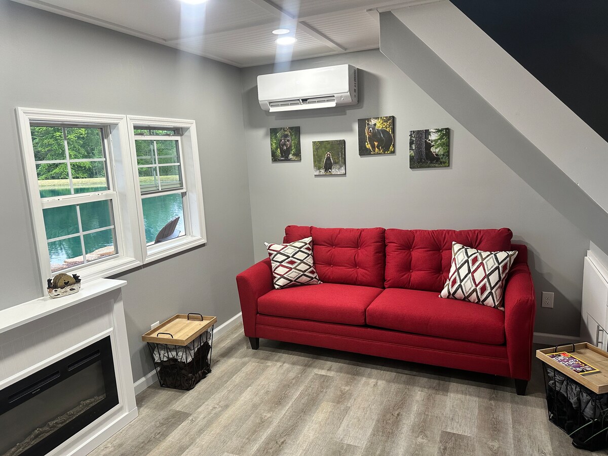 Ubicada en el condado de Muskingum, esta nueva cabaña en la red es única. Un acogedor loft con cama tamaño queen está abierto a una hermosa sala de estar con chimenea de gas, libros, juegos y un sofá cama. La cocina cuenta con cocina de gas, nevera, cafetera y utensilios de cocina. El baño cuenta con una gran ducha de azulejos, inodoro, toallas y artículos de tocador. Hermoso entorno en estanque privado abastecido con lubina, pez sol y carpa para tu diversión de pesca. Fogata, parrilla de gas, canoa y cornhole.