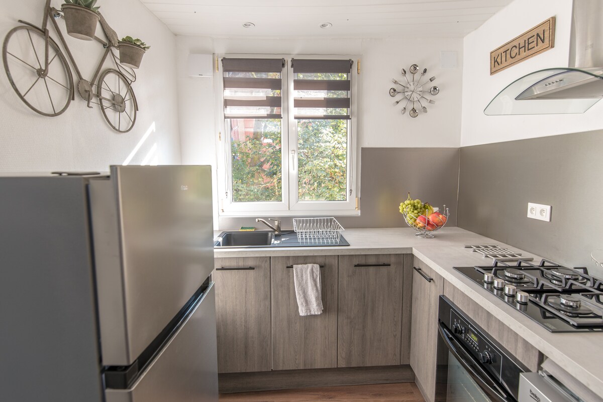 Estudio de 30 m², con 1 cama de 140 x 190 y sofá cama, cocina equipada, ducha a ras de suelo, cerca del famoso parque de atracciones Europapark y del nuevo parque acuático Rulantica, ¡único en Europa!Perfecto para los mercados navideños, a medio camino entre Estrasburgo y Colmar Plaza de aparcamiento privado y bajo videovigilancia Zumo, brioche, una variedad de mermeladas caseras, cápsulas de Nespresso e infusiones estarán disponibles para su primer desayuno
