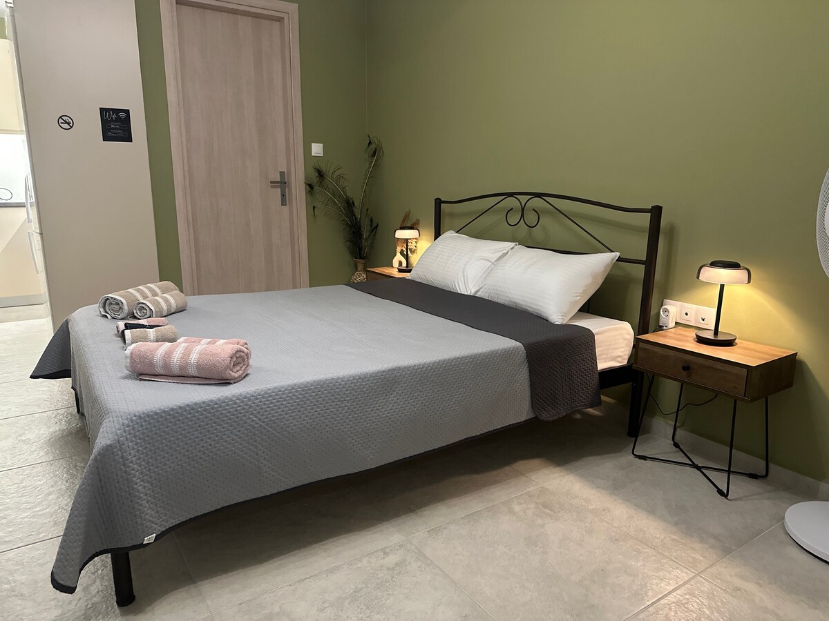Disfruta de una experiencia llena de estilo en este espacio situado en el centro de Myrina. Una pequeña concha verde le dio su nombre y sirvió de inspiración para la decoración del espacio, haciéndolo único. Con una excelente calidad de construcción y totalmente equipado, el visitante encontrará todo lo que necesita para una estancia cómoda y agradable. A poca distancia se encuentran tiendas de alimentación, la playa de Nea Madytos, el mercado y el puerto con sus tabernas.