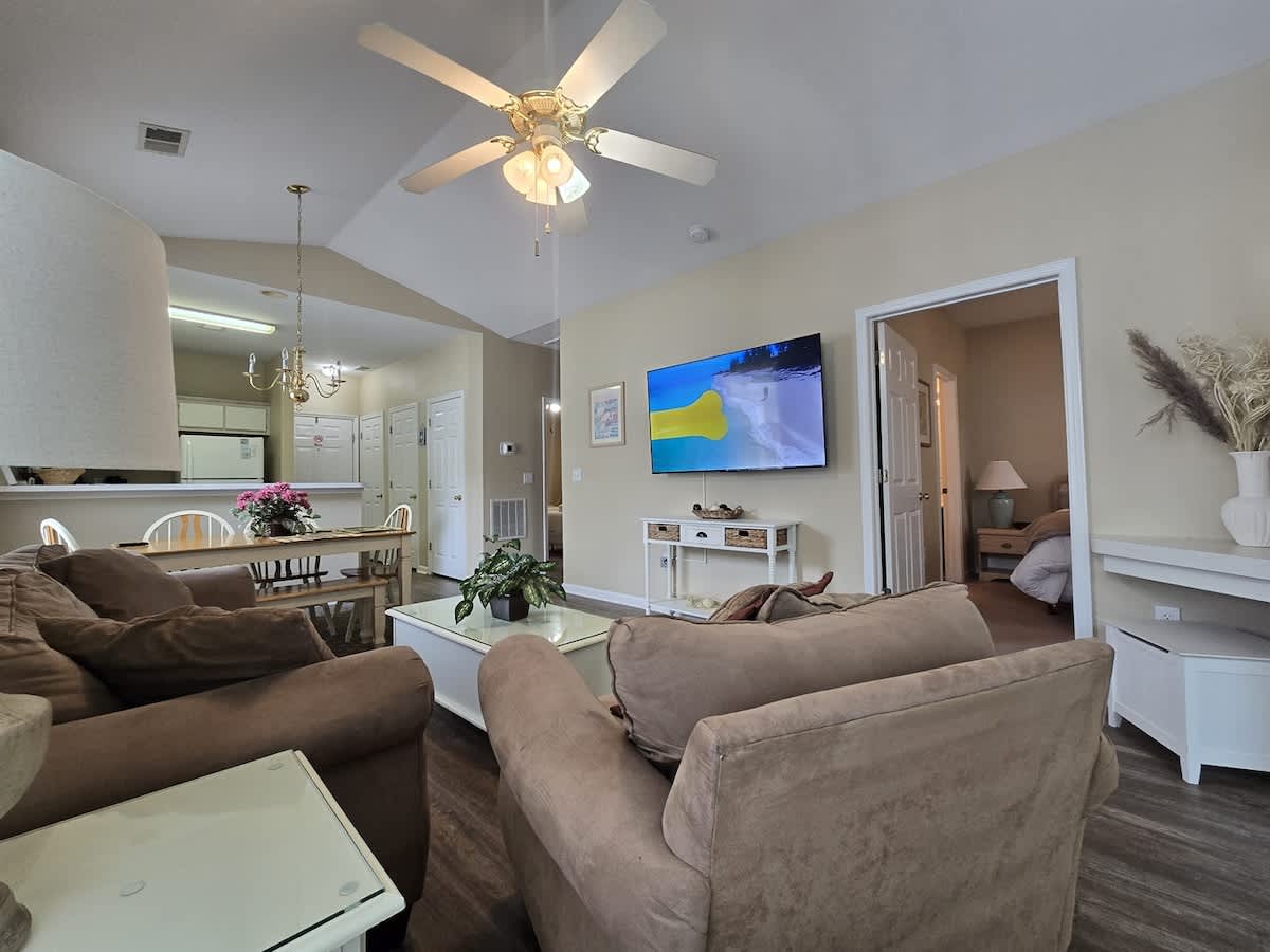 Relájese y recupere energías en este tranquilo condominio de 2 dormitorios en la costa de Myrtle Beach. Con una ubicación perfecta cerca de campos de golf y a pocos minutos de la playa, restaurantes y tiendas, este moderno espacio ofrece comodidad y tranquilidad en una comunidad apacible. Disfrute de una piscina compartida al aire libre, una cocina totalmente equipada, televisión inteligente, wifi de alta velocidad, balcón privado, estacionamiento gratuito y un sencillo proceso de autorregistro. Ideal para parejas, familias pequeñas, jubilados que buscan clima más cálido o para una escapada relajante en la costa.