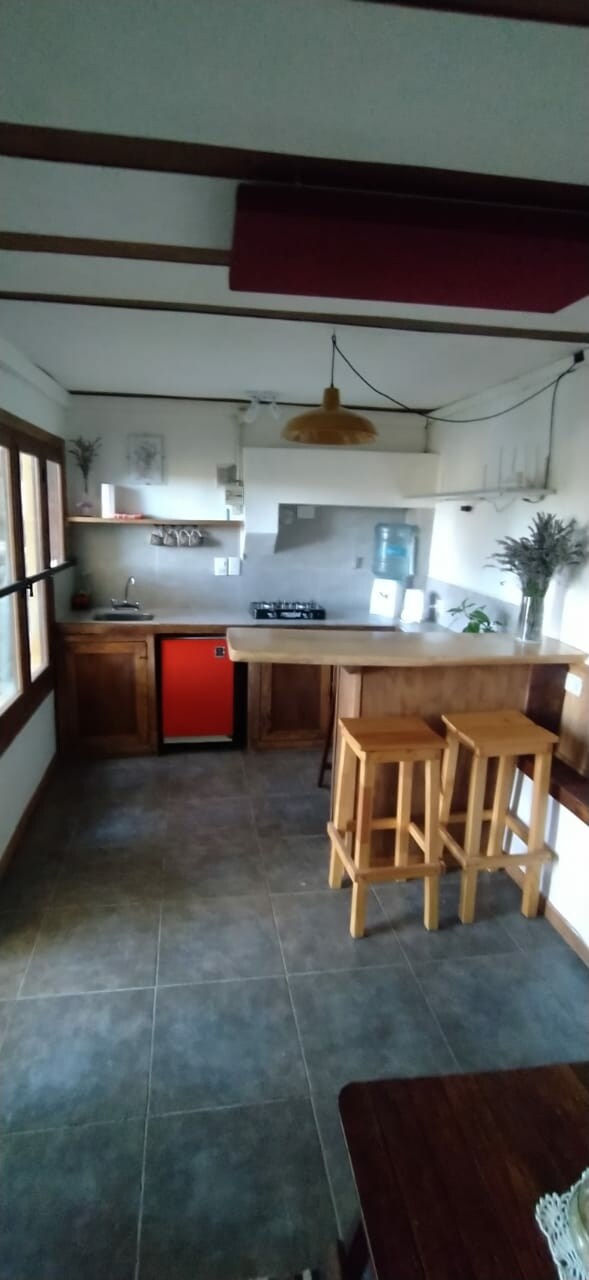 Pequeño monoambiente, entrada privada, baño completo y kitchenette (horno eléctrico y anafe), pava eléctrica, utensilios de cocina y heladera. Mesa pequeña y sillas. Sin t.v. En épocas de nieve o/y heladas es difícil llegar hasta el estacionamiento de arriba, por lo tanto se debe dejar el auto en el estacionamiento de abajo y subir por escaleras. También podrás encontrar una puerta cerrada que te lleva a un lavadero, el cual está clausurado por reformas