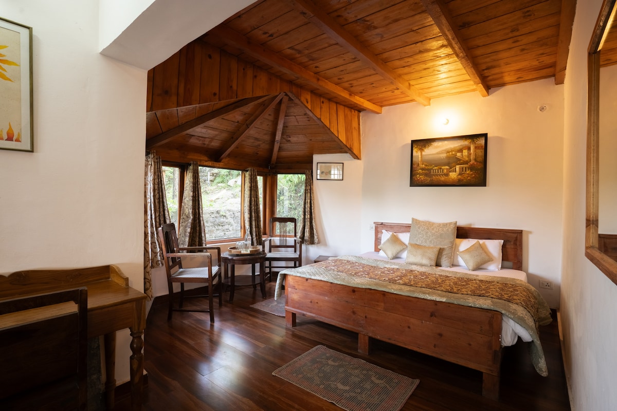 Wake up to 180° Himalayan views at Frozen Woods by The Northern Chapter, a boutique private stay in Satkhol, Mukteshwar near Nainital. Perfect for couples, solo travellers, creators, and work-from-the-mountains escapes, this peaceful room is surrounded by oak forests, valley silence, golden sunsets, and crisp Himalayan air. Located in Satkhol, one of the most serene corners near Mukteshwar and just about an hour from Nainital, the room offers uninterrupted mountain views and slow mornings.