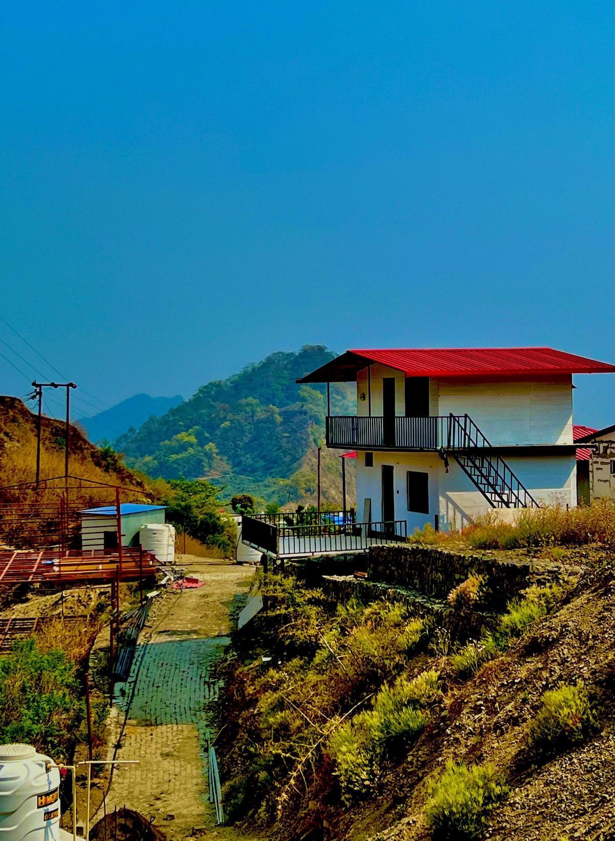 Alojamiento en Rothan Bhilangi Village Escápate a nuestro refugio en Dugadda Lansdowne, combinando comodidad y naturaleza. Servicios: - Televisión, equipo para hacer ejercicio, botiquín de primeros auxilios. - Wifi, espacio de trabajo. - Cocina totalmente equipada, barbacoa, comedor al aire libre. - Acceso al lago, chimenea, piscina, aparcamiento gratuito. El espacio: - Dormitorios cómodos, amplio almacenamiento. - Sala de meditación/recreación, salón, comedor. - Cocina moderna. Disfruta de mañanas junto al lago, barbacoas o noches junto a la chimenea. Reserva ahora por la comodidad y la belleza natural.