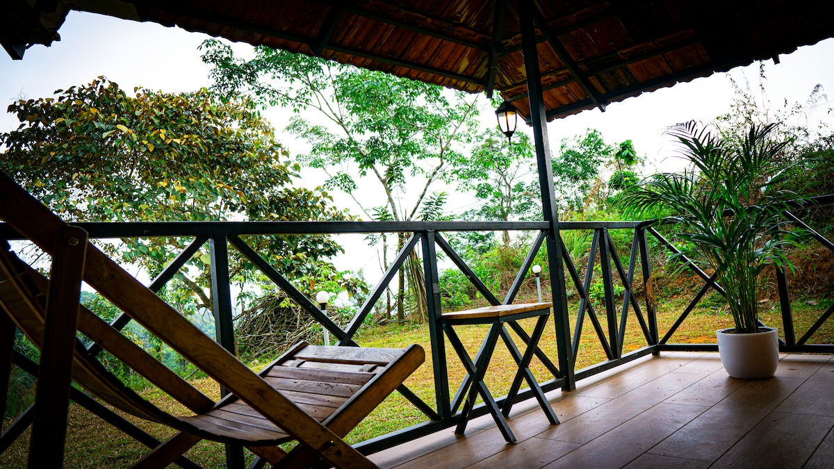 Welcome to FARMCabin —a charming eco-cabin tucked inside a lush coffee plantation! Wake up to tea garden views on one side and a stream from a seasonal waterfall on the other. Built with sustainable materials, surrounded by spices, trees, and flowers, it’s your perfect nature escape. Just 5 km from Meppadi, this cozy hideaway blends comfort, calm, and a sprinkle of wild beauty—ideal for couples or solo travelers.