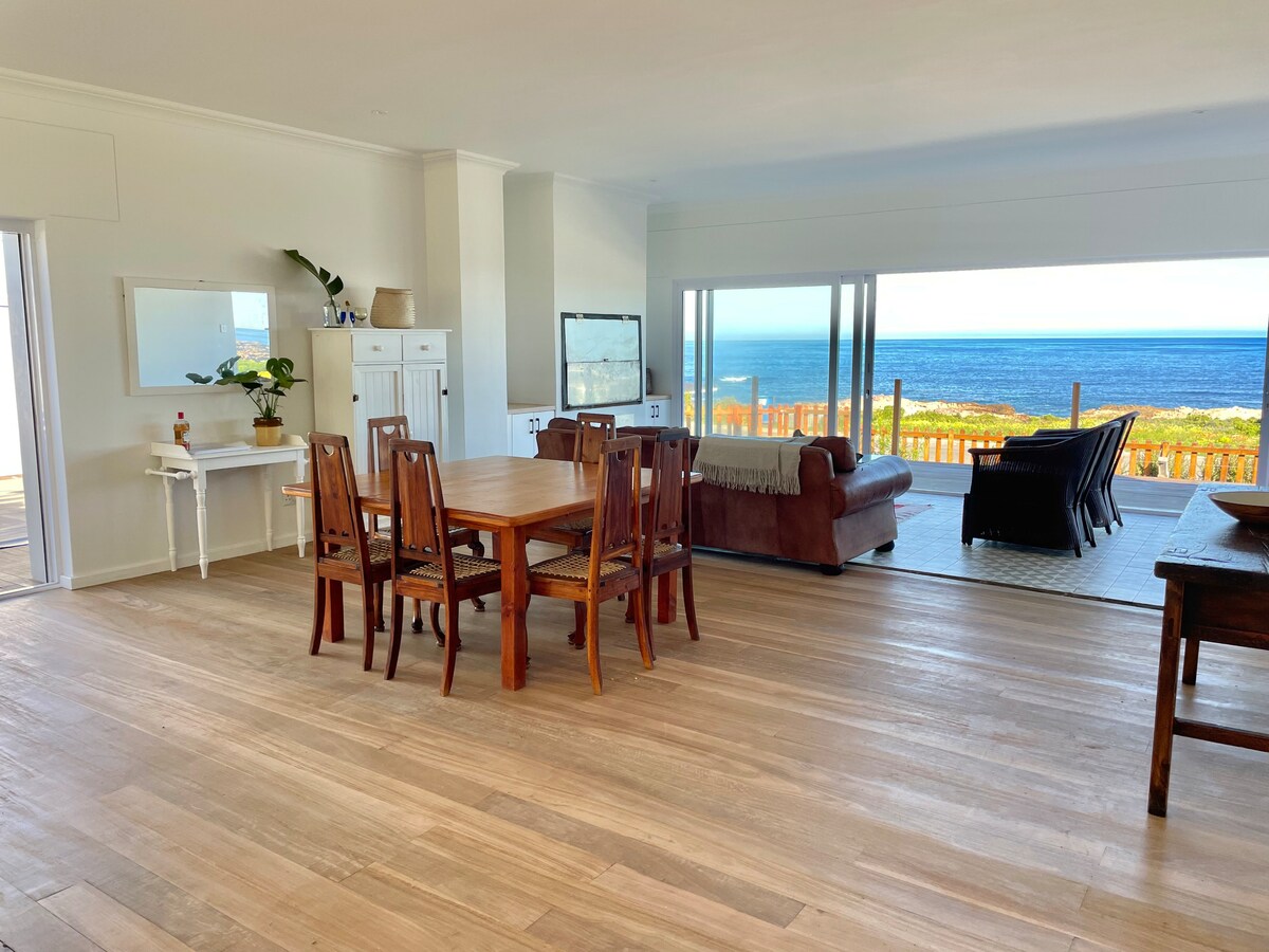 Relax with the whole family at this peaceful place to stay. Seaviews all around. Braai on the wooden deck and watch your children play on the beach. 3 Bedrooms, 1 bathroom, sleep 6. Dstv, free wi-fi, inside fireplace, microwave, gas top oven, dishwasher, fridge with freezer, nespresso machine (bring own pods). Inverter and battery backup for loadshedding.