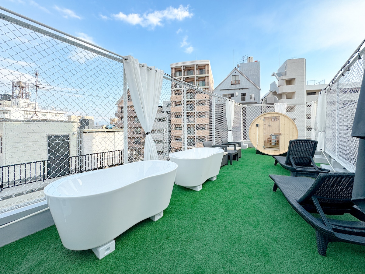 Downtown 200 Ping Luxury Villa ! Experimenta la cultura japonesa de las aguas termales ! aguas termales dobles ! Sauna ! 5 Habitaciones 3 Inodoro | 2 minutos en metro ! Tsutenkaku, Namba, Kuromon Crawl Circle