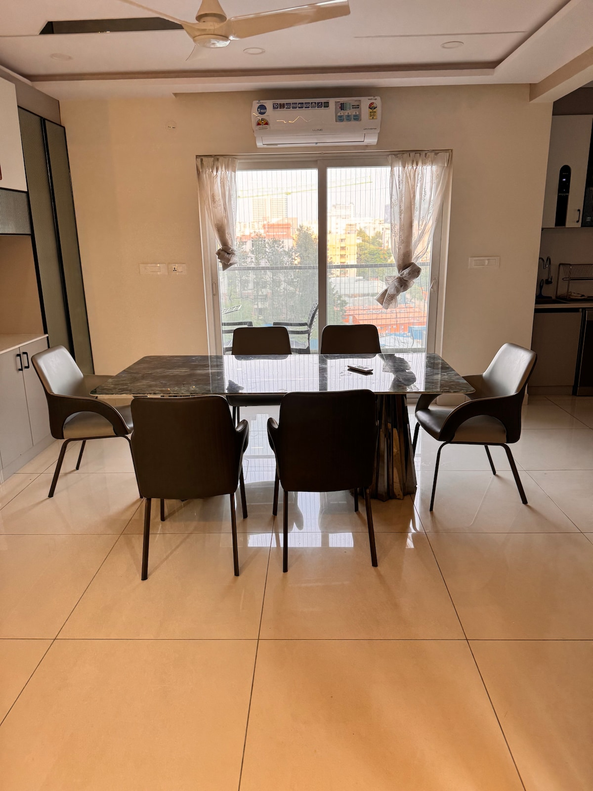 Disfruta de tu estancia en este tranquilo apartamento totalmente amueblado con las mejores vistas al lago y a la ciudad para familias. El piso está situado en una comunidad cerrada y céntrica. 1. El aeropuerto está a 30 minutos en auto del lugar, sin autopista de tráfico al aeropuerto. 2. A 5 minutos a pie del Consulado de EE. UU. (1km). 3. Microsoft, Amazon, Apple, Wipro, Infosys, Indian School of Business, sede de ICICI Bank, Accenture, Franklin Templeton a 1 km de distancia. 4. Academia de deportes Gopichand, Hospital Continental, Hospital Star, Campus IIIT en un radio de 2 km