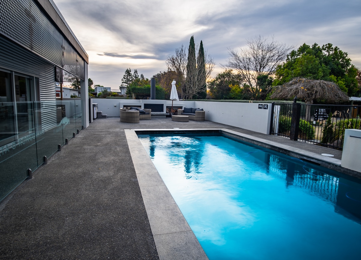 A contemporary Art Deco house in the heart of Havelock Village perfectly set up for families, larger groups, or peaceful retreats. Complete with heated swimming pool (Oct to April), large outdoor fire, mini Weber BBQ, Delonghi espresso machine, and new kitchen & bathrooms (July 2024). Bathroom, laundry, & kitchen essentials are provided for your stay. The kitchen is fully equipped with everything you need from morning coffee to wine & platters, or cooking at home with kids.