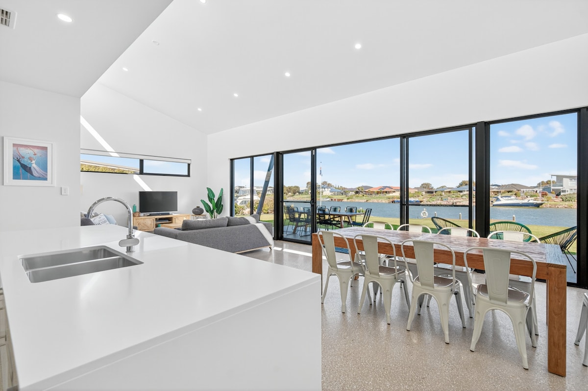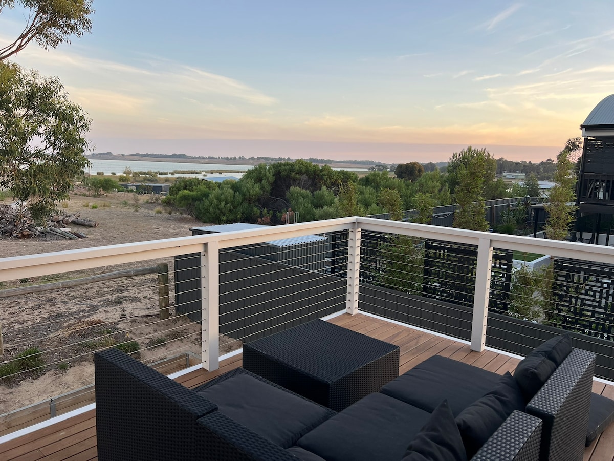 Escape the Blues Goolwa is in the perfect holiday location, almost hidden, but so close to all of Goolwa’s attractive leisure facilities. *Only 200m to the popular nature playground, boat ramp, Fleurieus and Bombora Cafe *Fireplace and outdoor fire pit *The open plan design offers a great space for couples, friends and or families *Front and rear entertaining decks *Wifi *Smart TV with Netflix *Luxury linen and bath towels provided *Filtered drinking water *Board games & table tennis available