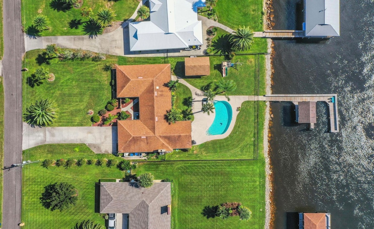 Casa de estilo resort de 4 dormitorios: frente al río/piscina/gimnasio, situada justo en el St. Johns River, a pocos minutos de la playa, la isla Talbot, Fernandina, la isla Amelia, el centro de Jacksonville y la playa de Jacksonville. Completa con IMPRESIONANTES vistas al atardecer. En el patio trasero totalmente vallado encontrarás cómodos asientos, una terraza de piscina de gran tamaño, un patio con césped, una gran piscina climatizada, un muelle, situado directamente en el St. Johns, con excelente pesca.