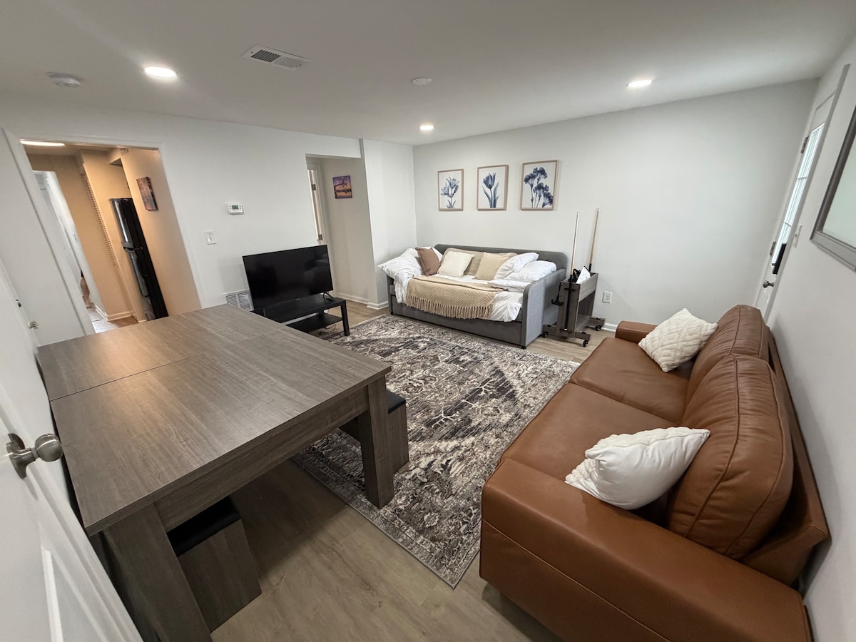 Newly renovated 1 bd 1 bath two story unit in Capitol Hill. This home can accommodate up to 4 people and is less than half a mile to Eastern Market Metro. Minutes way from Supreme Court and Capitol Hill. Beautiful walk to the National Museums and the White House. Less than 2 miles from National Park. Amenities include coffee/tea, central air, 1-TIGHT car parking (mid size or smaller vehicle), full kitchen, fast wifi, and beautiful hardwood floors.