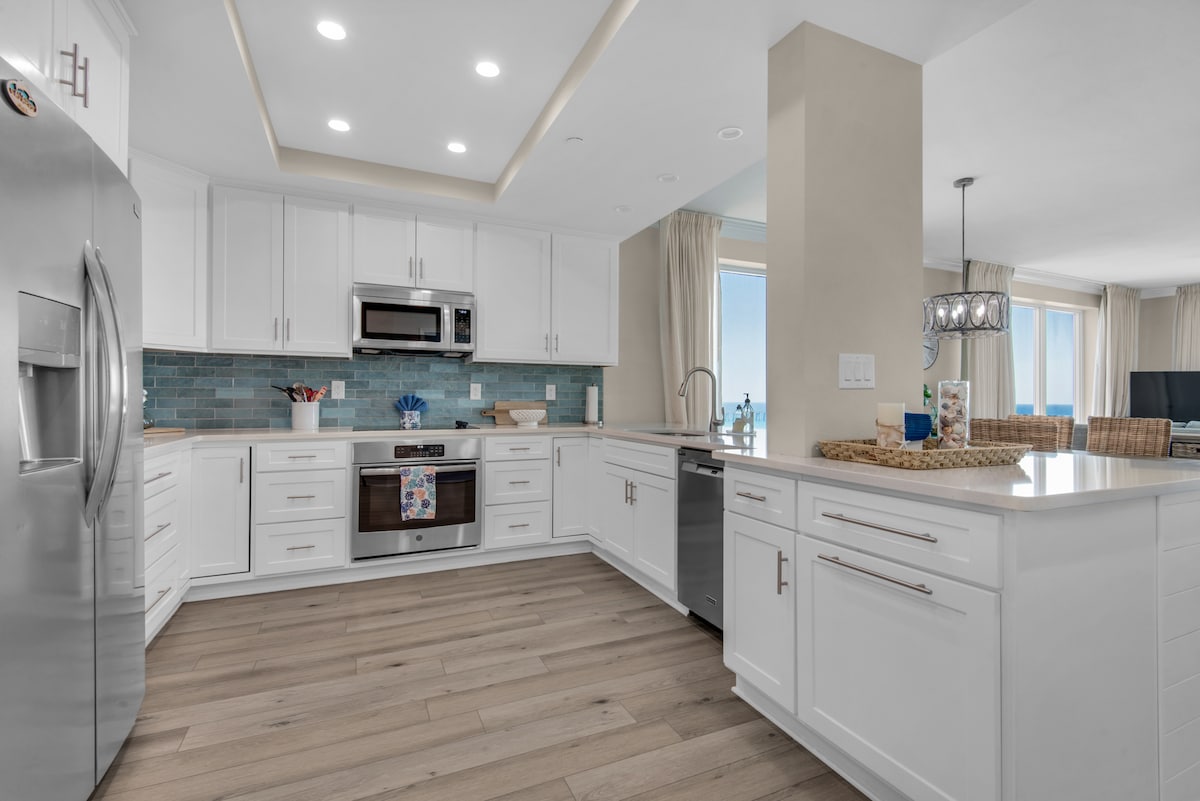 Hermoso apartamento de 1 dormitorio y 1,5 baños con capacidad para 6 personas. ¡Trae tus trajes de baño y prepárate para relajarte! El apartamento está en el piso 12, la torre más cercana al muelle. - 1 dormitorio con cama tamaño king, acogedora zona de literas para niños y colchón de espuma de gel en el sofá plegable. (TODOS LOS COLCHONES SERÁN NUEVOS EN SEPTIEMBRE DE 2025). - ¡Se proporcionan sábanas y toallas, incluidas toallas de playa! - 2 sillas de playa, 2 tablas de boogie y una sombrilla incluida. - Lavadora y secadora. - Cocina totalmente equipada para disfrutar de la cena con vistas. - Wifi y cable