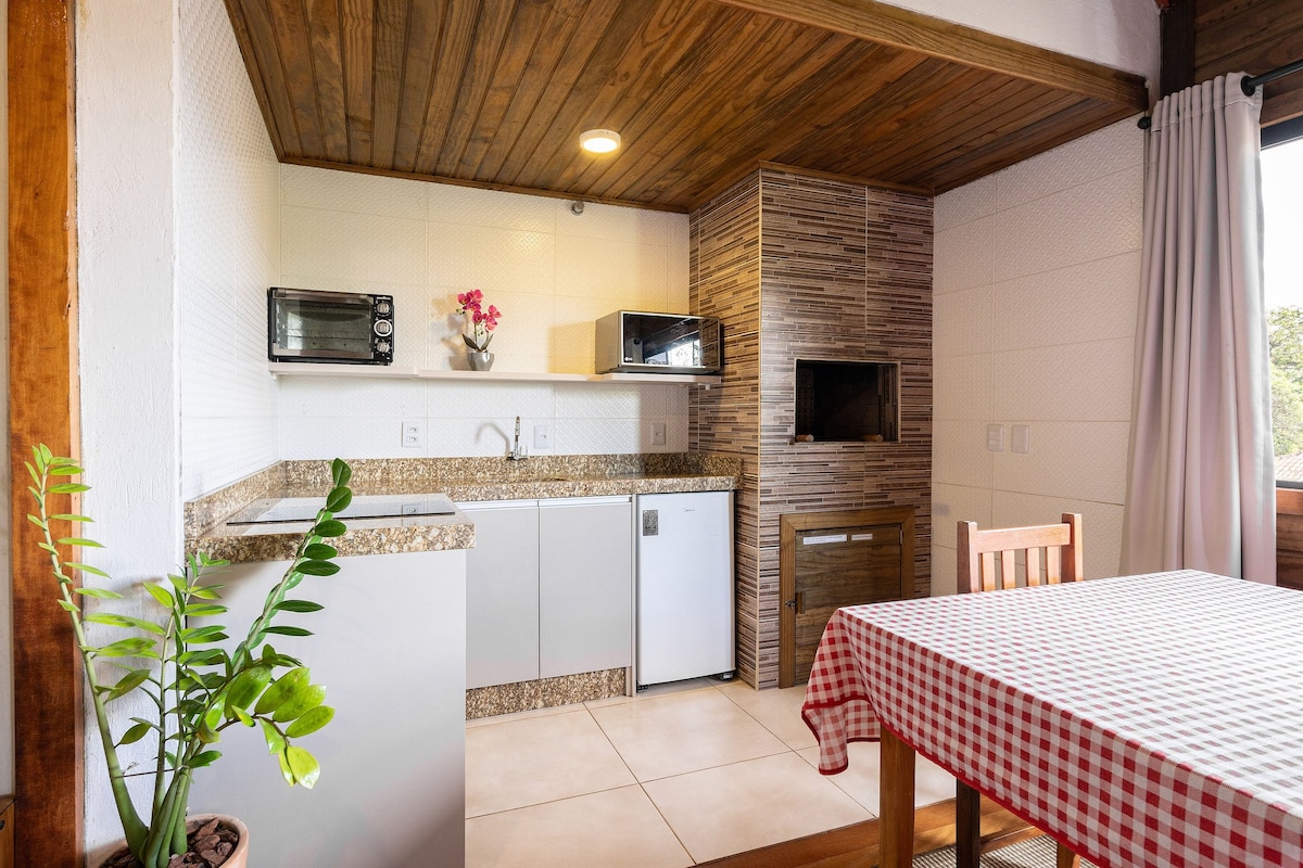 El área exterior cuenta con un amplio estacionamiento, quiosco con parrilla, terraza, ducha y un hermoso césped. En el interior, cinco dormitorios, todos con ventiladores de techo, tres baños con duchas, un lavabo y un lavadero. La cocina cuenta con microondas, horno eléctrico, estufa, nevera, cervecero profesional, parrilla interior, además de horno de leña para pizzas y chimenea, siendo una gran opción incluso para los días más fríos. ¡Lee la descripción del espacio para obtener más información sobre la casa!