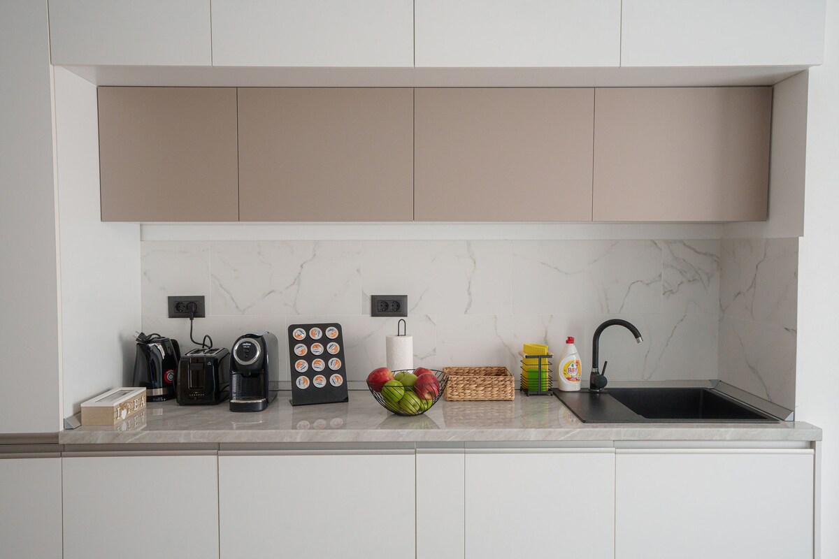 El apartamento Topaz 103 está situado en Odyssey by Alezzi Resort (el complejo más nuevo, abierto en 2025). Este acogedor apartamento de un dormitorio ofrece alojamiento para 4 adultos o 2 adultos y 2 niños. La distancia a la playa es de alrededor de 300 metros y el área de playa es una de las más buscadas en Mamaia Nord Resort. A poca distancia de la playa, restaurantes. * Acceso gratuito al SPAy al parque infantil * Acceso gratuito a piscinas durante todo el año y área de fitness. * Wifi y estacionamiento gratuitos * ¡Café/agua! * Asistencia las 24 horas, los 7 días de