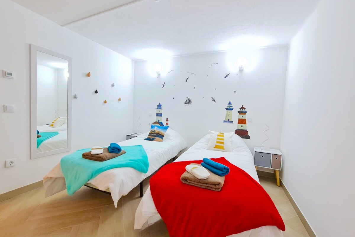 La propiedad se encuentra a menos de 300 metros del mirador más hermoso de Nazaré (Miradouro do Suberco) y a menos de 1 km del Fuerte de São Miguel. La habitación Faro es privada, equipada con 2 camas individuales y comparte un baño (3 duchas, 3 lavabos y 3 inodoros) así como un área con mesas y sillas para comer o trabajar con calefacción y ventilación en toda la propiedad. Bien ubicada en la parte de Nazaré que prefieren los huéspedes, según reseñas independientes. ¡Hablamos tu idioma!